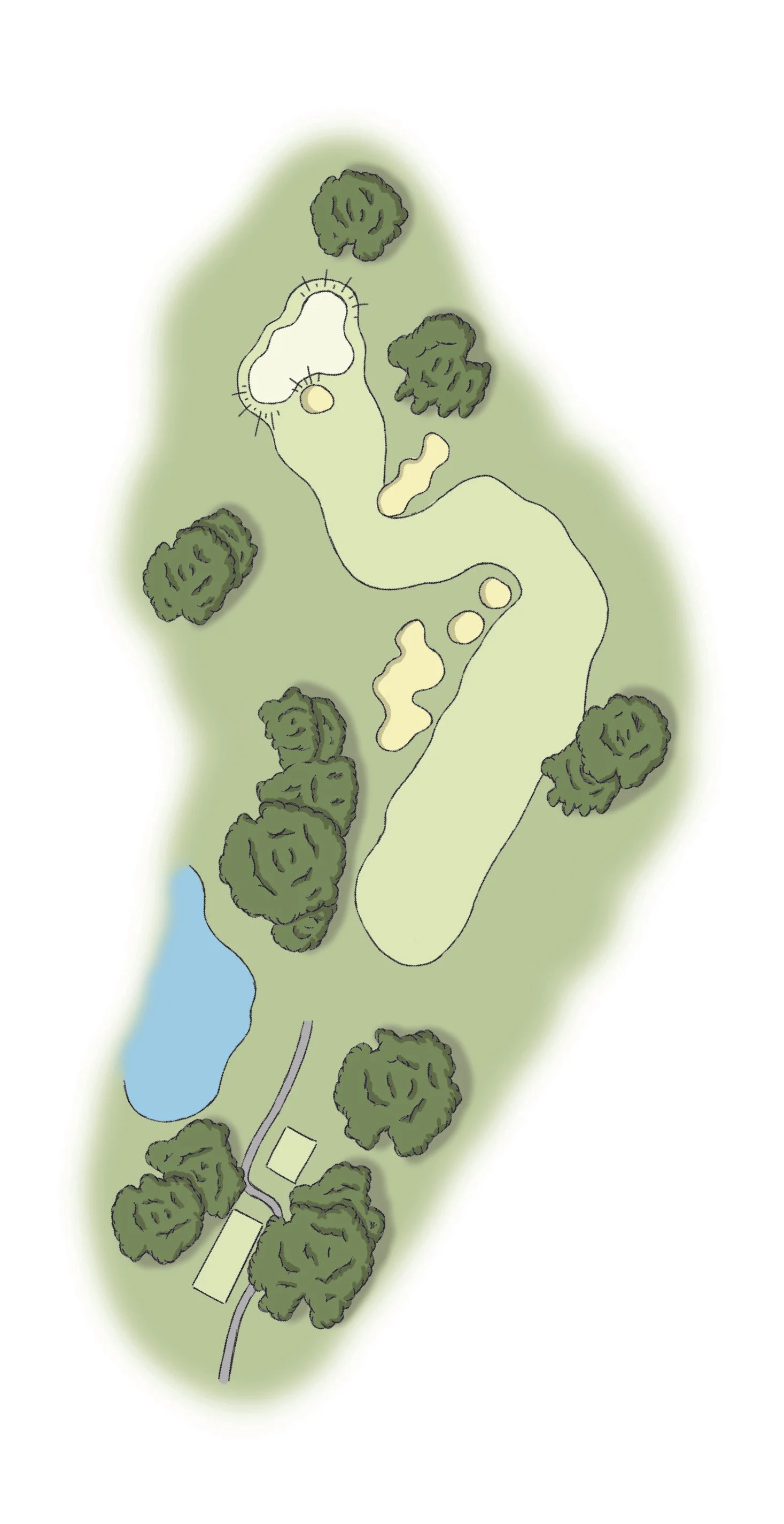 Individual hole diagrams are ideal for tee signage illustrating the shape and layout of the hole along with any hazards and points of interest.